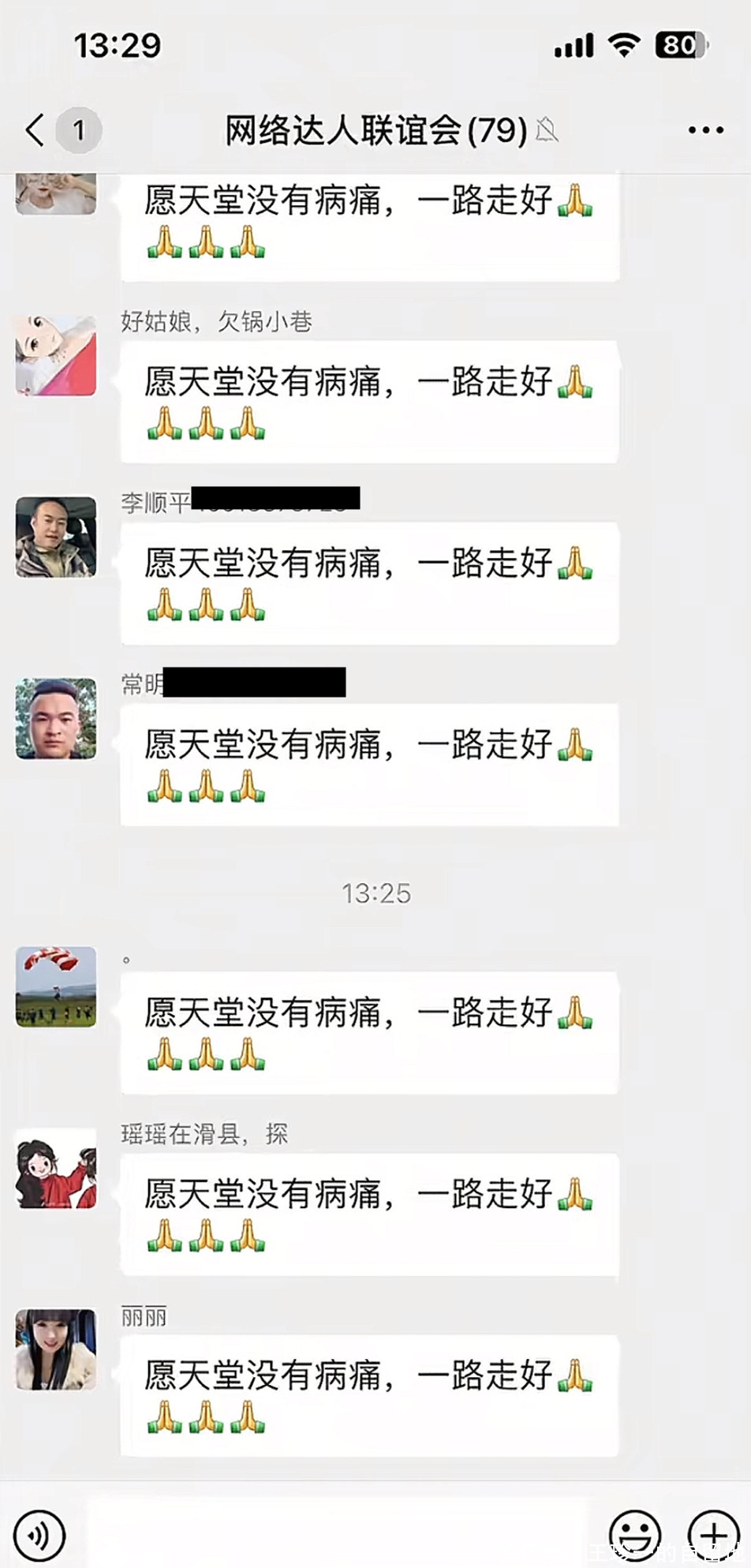 也是从这张群截图中可知,二嫑哥是病逝,但具体是什么病,并没有被曝光。